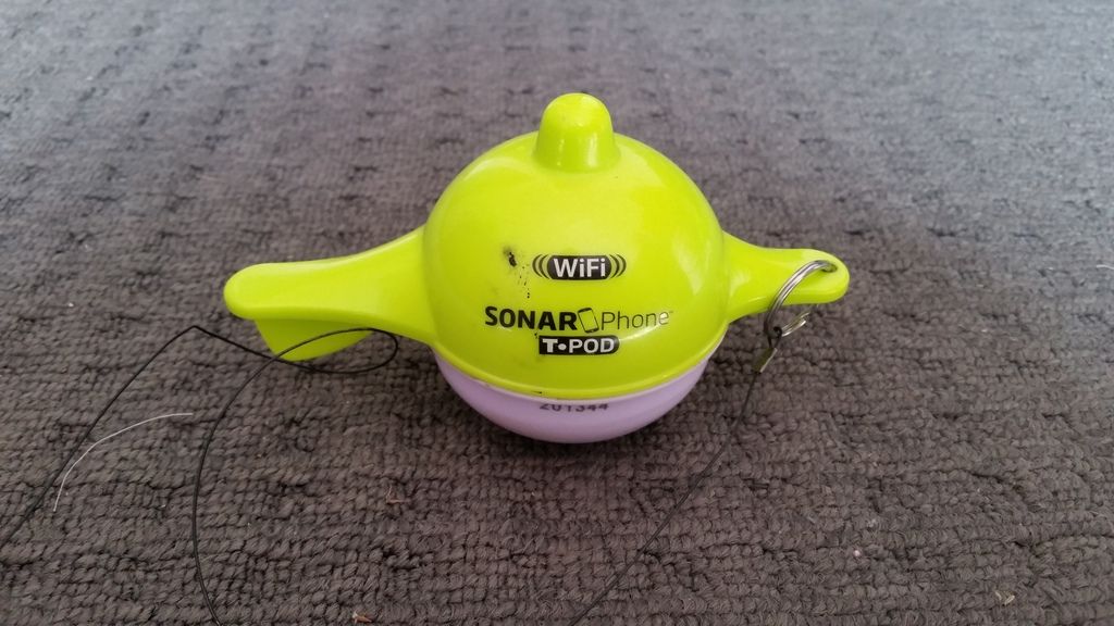 sonar pod can be trolled or cast by rod and shows bottom depth and structure on the screen of a phone. Great for finding deep holes.