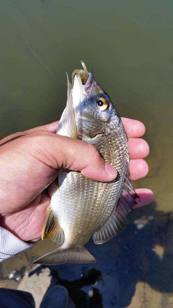 went out again today around maribyrnong below highpiont and got 4 bream, the biggest measuring a little over 37cm. the first 3 fish caught were in the shallows and i was able to sight cast to the fish to try and get the ones i wanted. they were spooked after a little while by a passing charter boat and went down deep after that. I had been using live shrimp for bait that i collected last week but when I ran out I started using unweighted squidgy critter baits coated in xfactor, only managed 1 on the imitation bait.